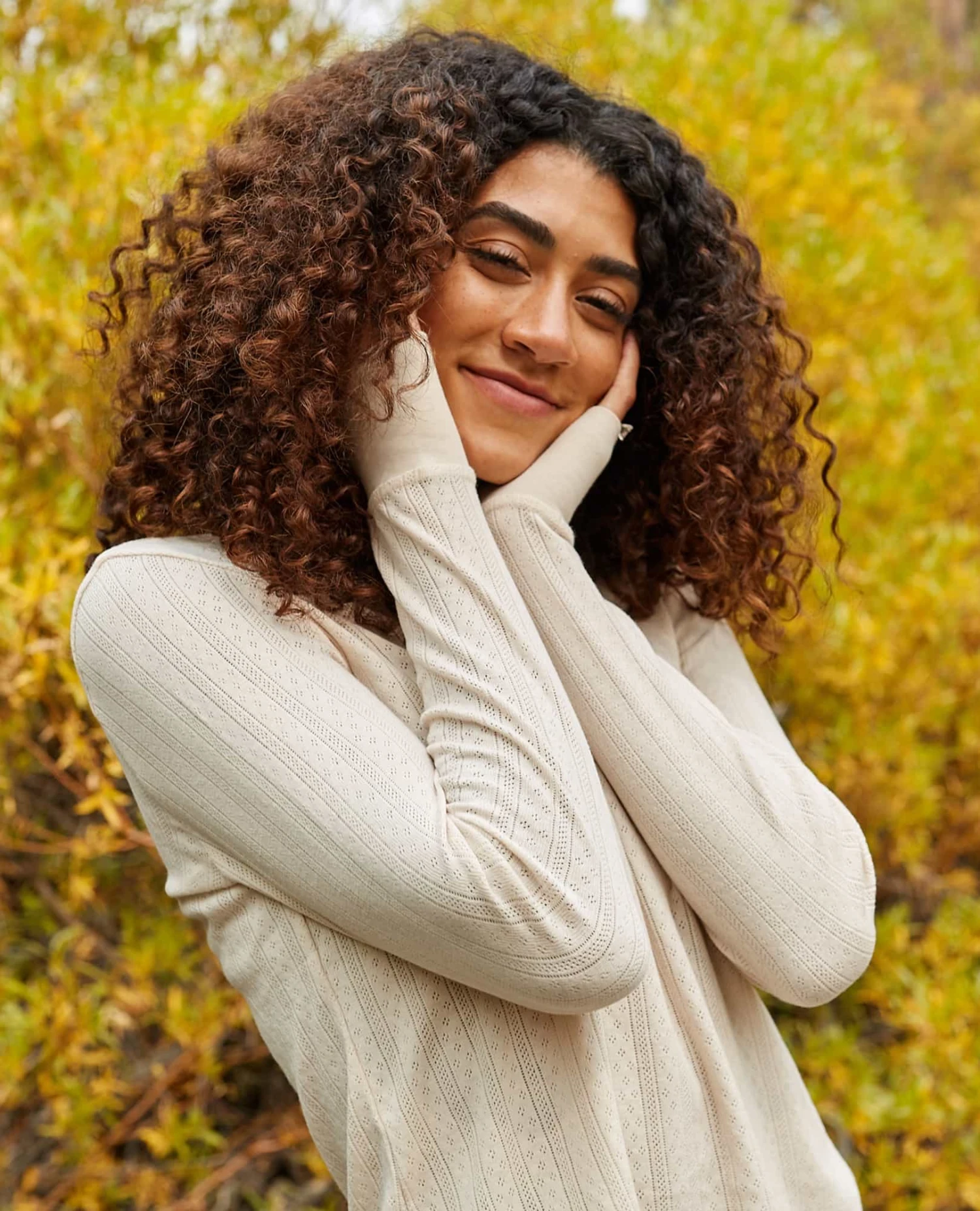 With cute details like a subtle hem along the neckline and pointelle stitching throughout, this spruced-up crew is made from an eco-friendly blend of organic cotton and recycled polyester that brings both texture and coziness to any cool-weather outfit.