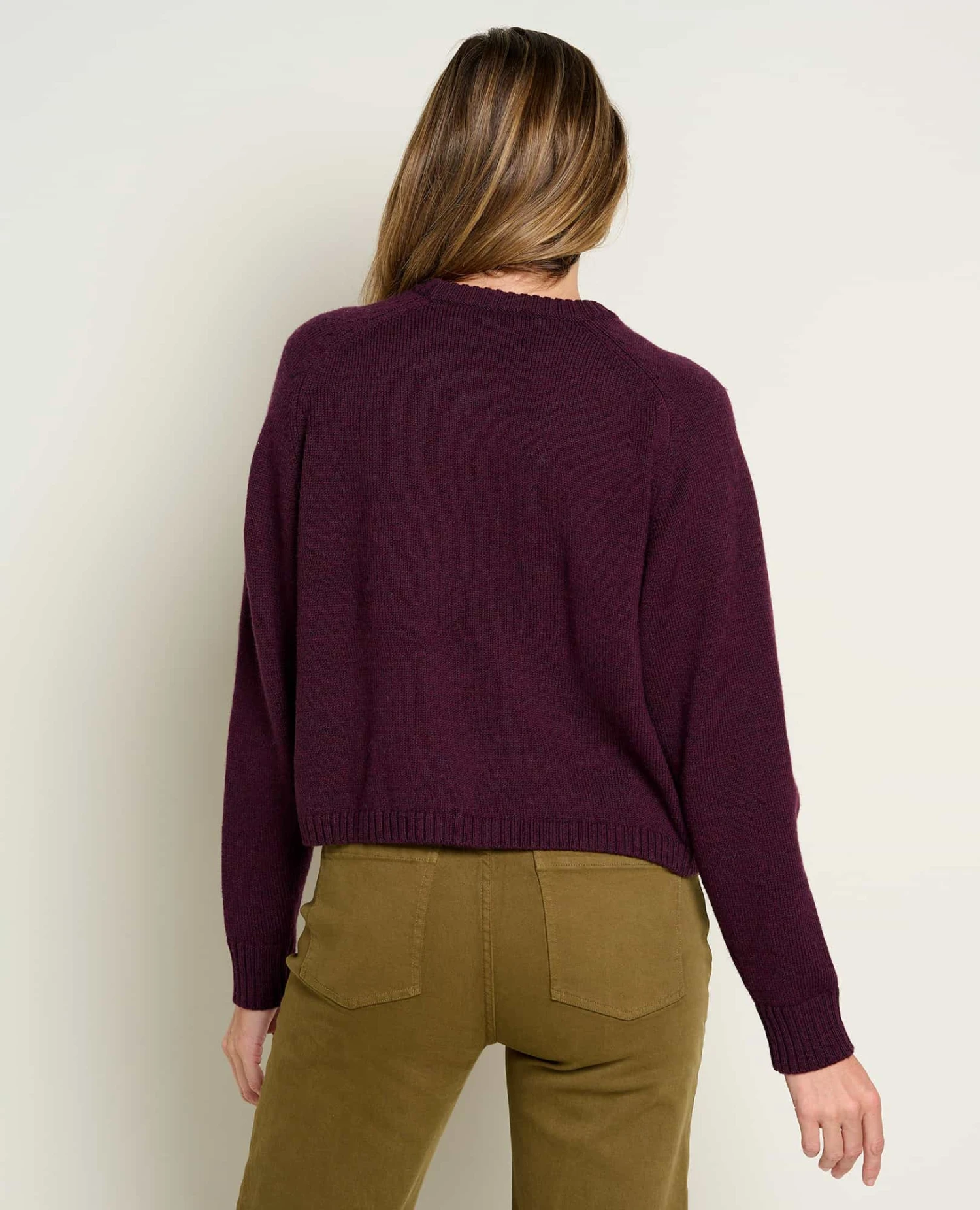 Proof that not every sweater is bulky, this one is relaxed for total comfort but cropped to keep things cute. A mini-rib at the hem and a shark’s tooth collar add just the right amount of flair.