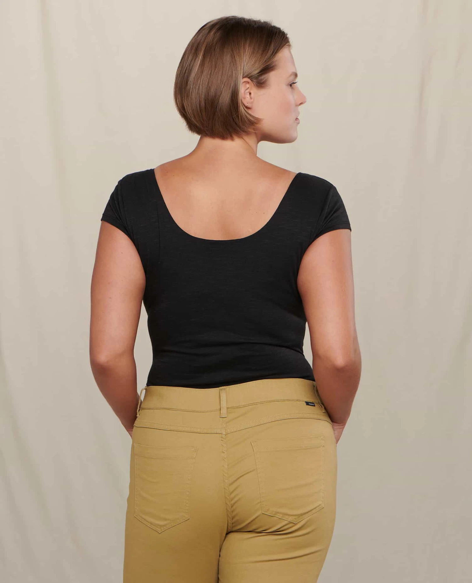 Moving, grooving, and totally fuss free. This bodysuit hugs and stays put without complaint. Featuring our superstar sustainable Samba fabric and a cap sleeve, she’s instant staple status.
