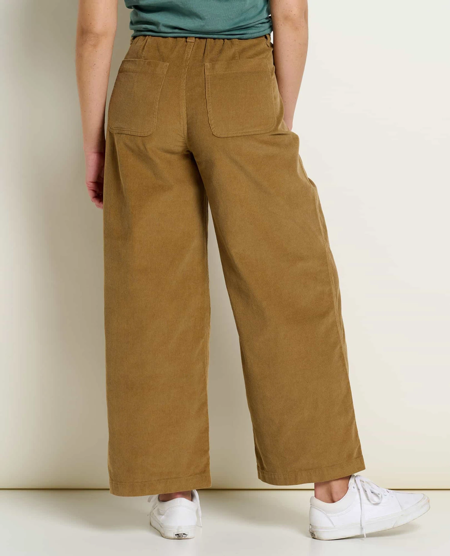 Fit: Wide leg fit, partial elastic waistband, mid rise, ankle length, 27.5″ inseam