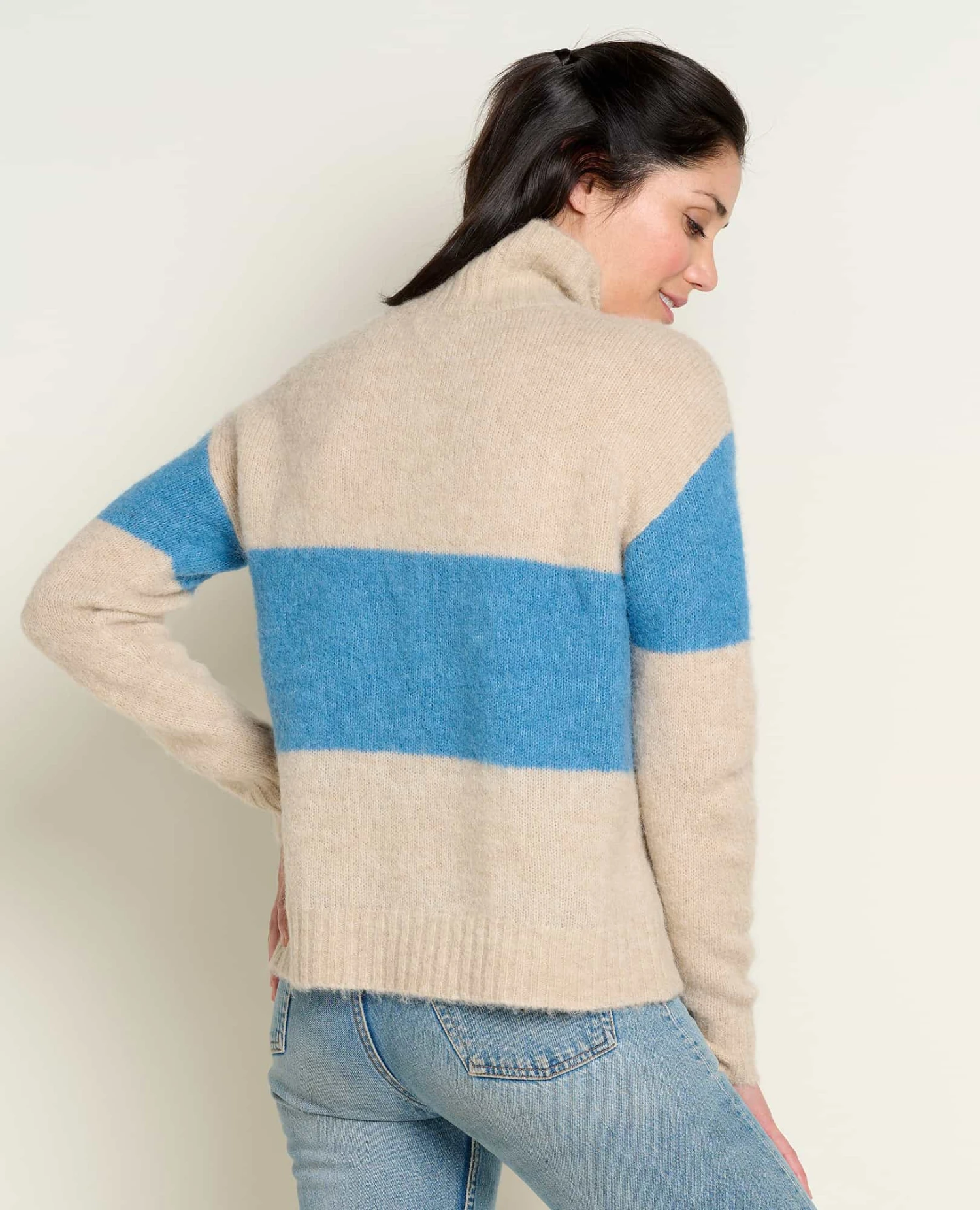 Fit: Relaxed fit, turtle neck, drop shoulder, 22.5″ length
